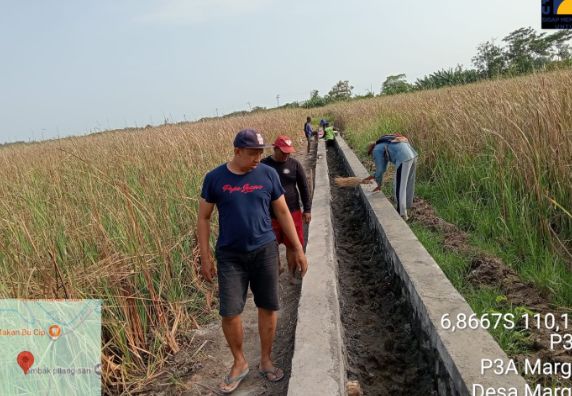 Pembangunan talud irigasi sepanjang 620 meter di Desa Margorejo yang bersumber dari dana P3A telah selesai dikerjakan. Talud ini berada di utara area persawahan yang sebagian lahan terdampak abrasi akibat pasang laut dan erosi pesisir.