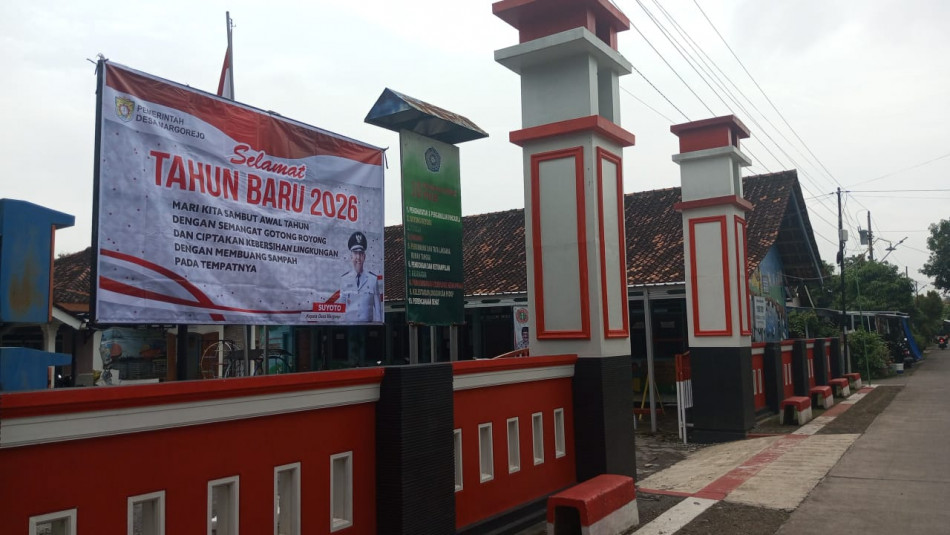 Pemerintah Desa mengajak seluruh masyarakatuntuk mengawali tahun baru dengan semangat gotong royongserta menjaga kebersihan lingkungandengan membuang sampah pada tempatnya.